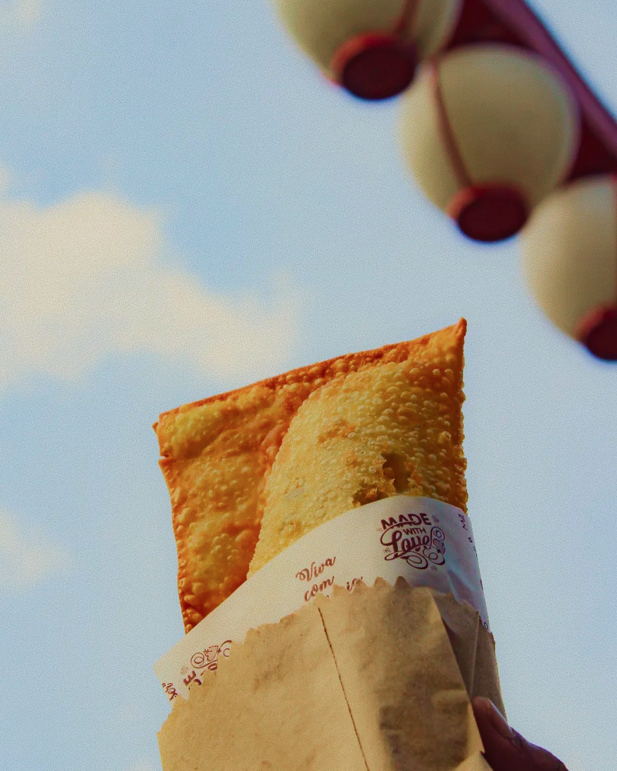 Dica: Por ser um pastel enorme, ele é perfeito para ser compartilhado. Além do pastel, você vai encontrar coxinha, sonho e churros, não deixe de experimentar outras opções.